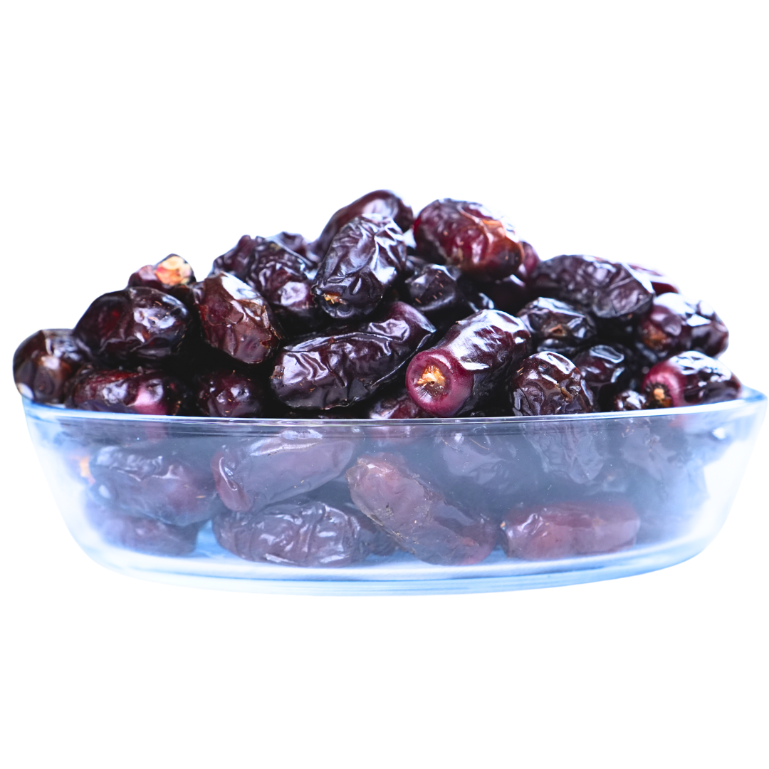 Sulthan dates are typically large and elongated, with a dark brown to black color when ripe. They have a tender